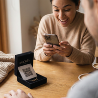 À l'ouverture de l'écrin, la surprise est double : le bijou, puis le mystérieux QR code. Un simple scan avec son téléphone, et votre visage apparaît pour délivrer votre message. Préparez-vous à vivre un moment d'émotion pure, partagée.